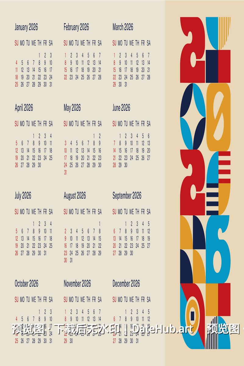 彩色几何极简2026日历