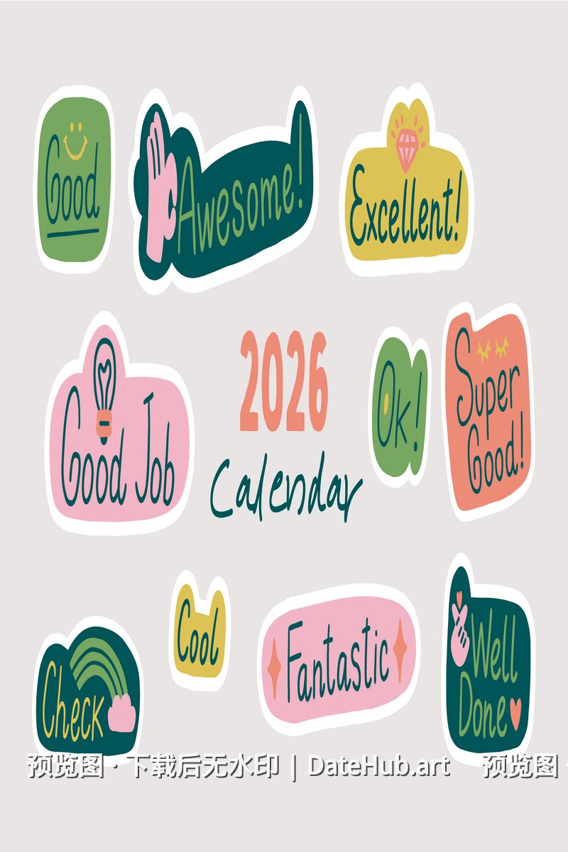 彩色贴纸校园表扬2026日历
