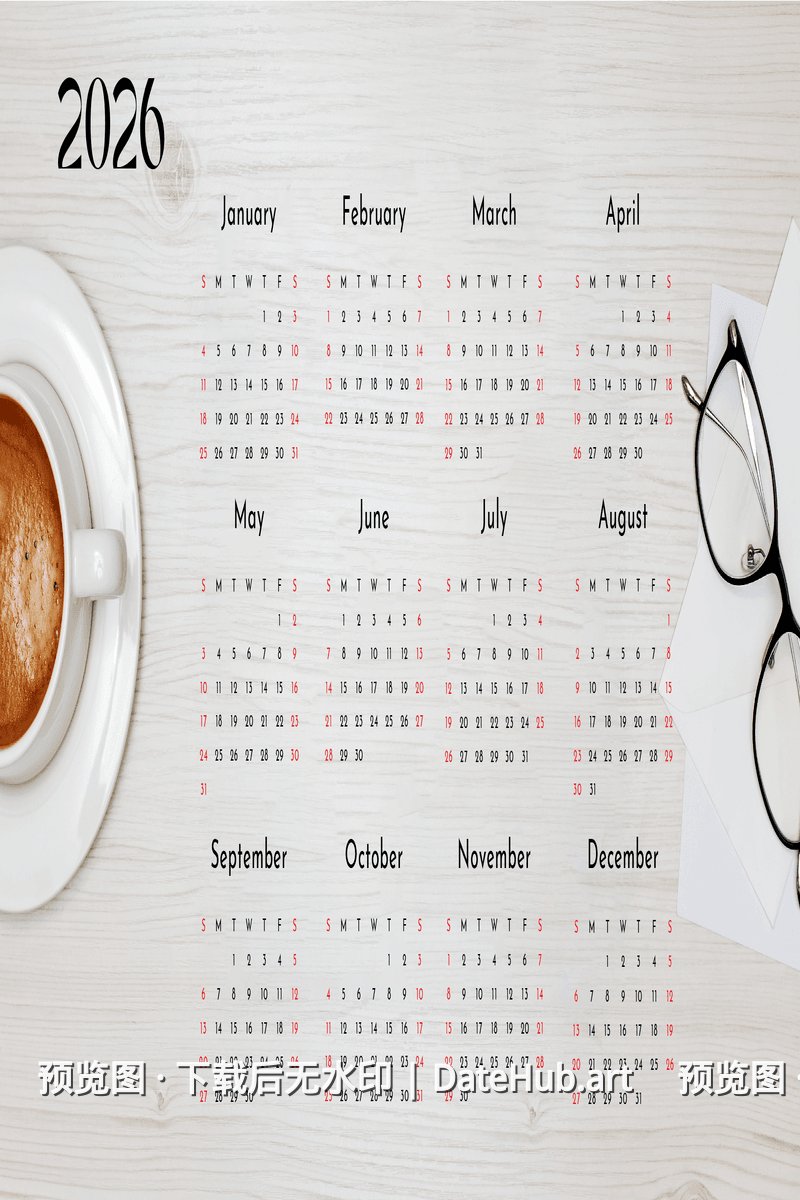 💡 提示:此日历为 2026 年版本,包含全年 12 个月份。 如需其他年份日历,请返回首页浏览更多选择。