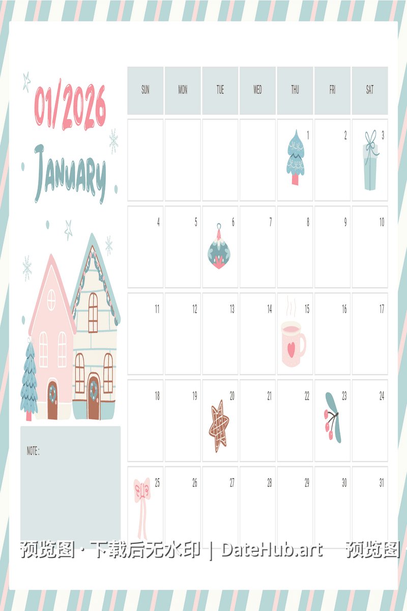 💡 提示:此日历为 2026 年版本,包含全年 12 个月份。 如需其他年份日历,请返回首页浏览更多选择。