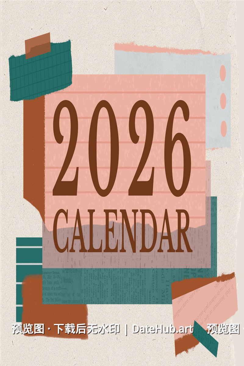绿棕拼贴2026月历