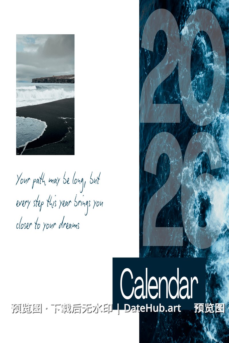 蓝白现代2026挂历