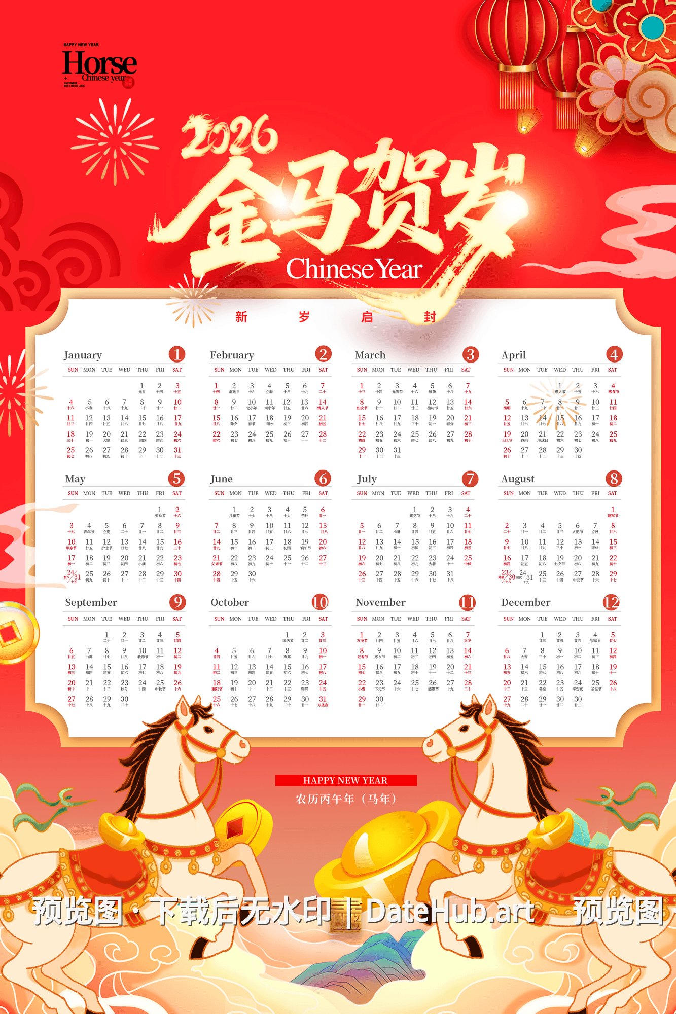 💡 提示:此日历为 2026 年版本,包含全年 12 个月份。 如需其他年份日历,请返回首页浏览更多选择。